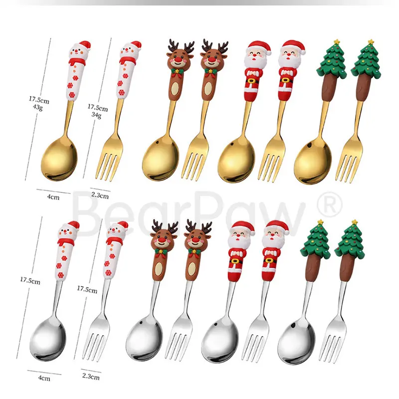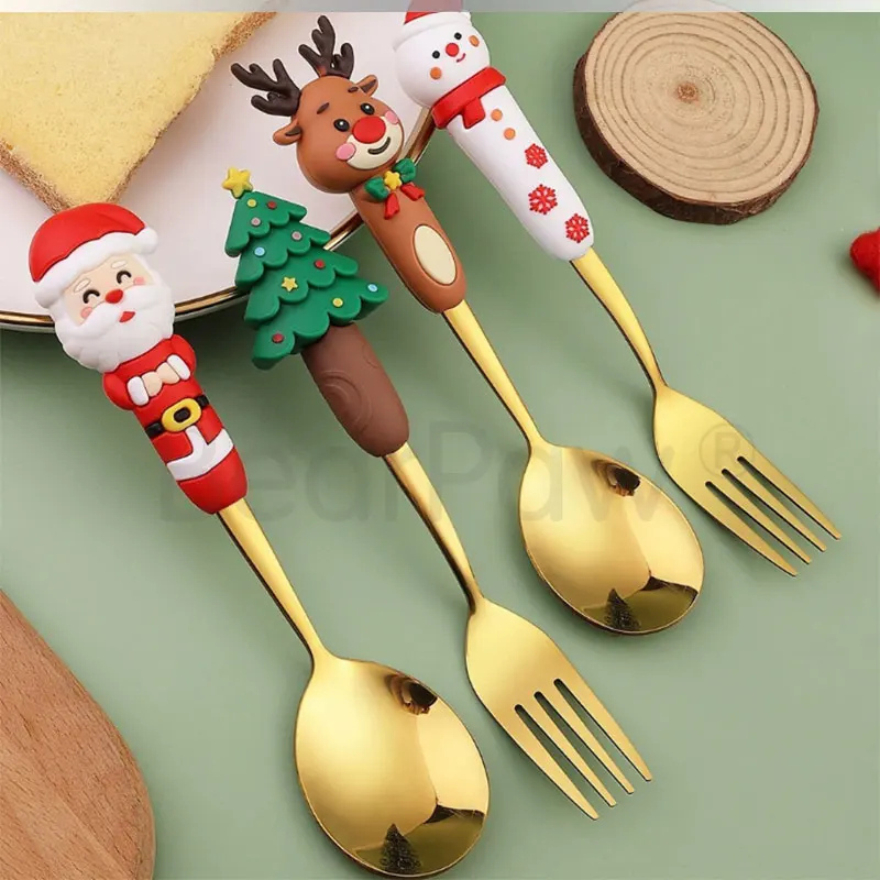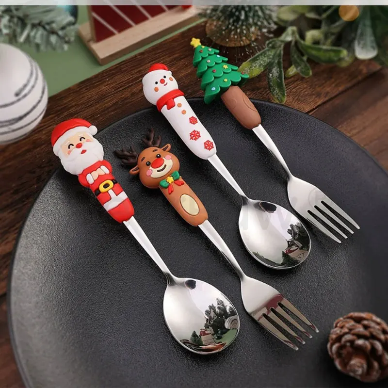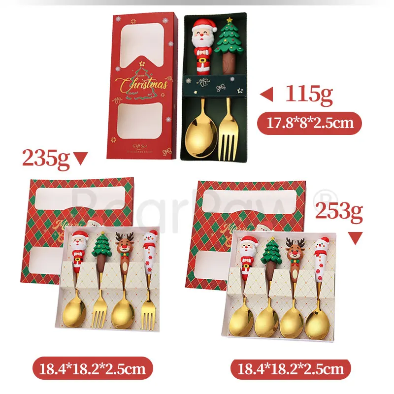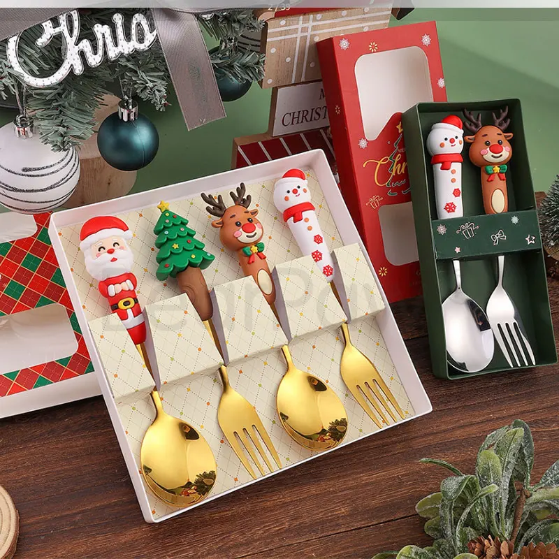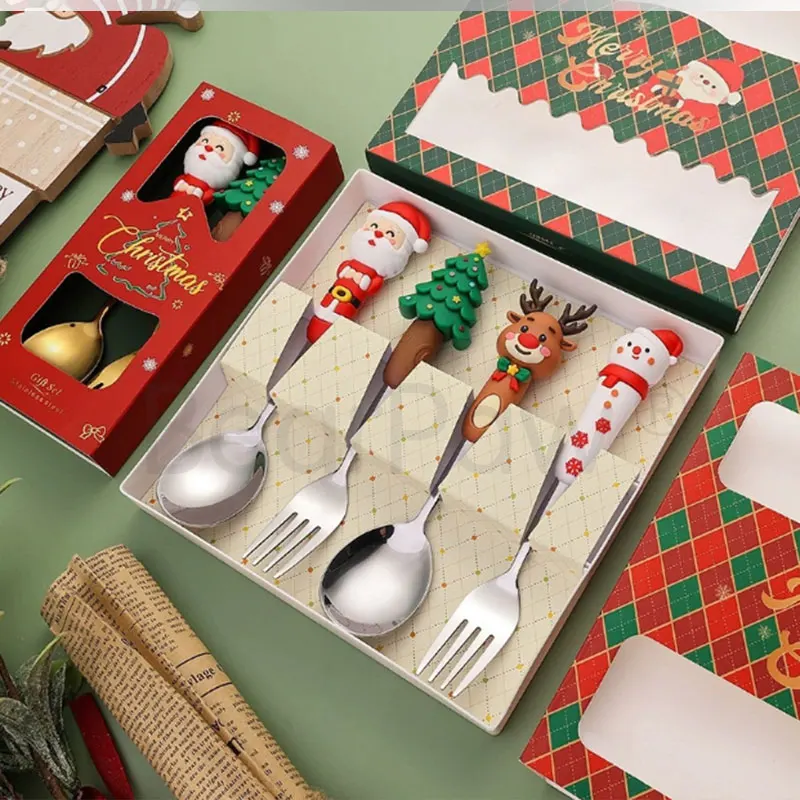 Un ensemble de couverts de Noël 4 pièces dans un coffret cadeau, en acier inoxyd