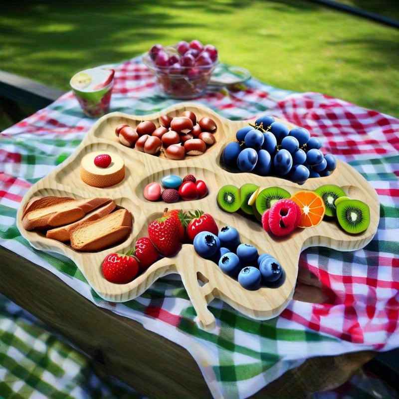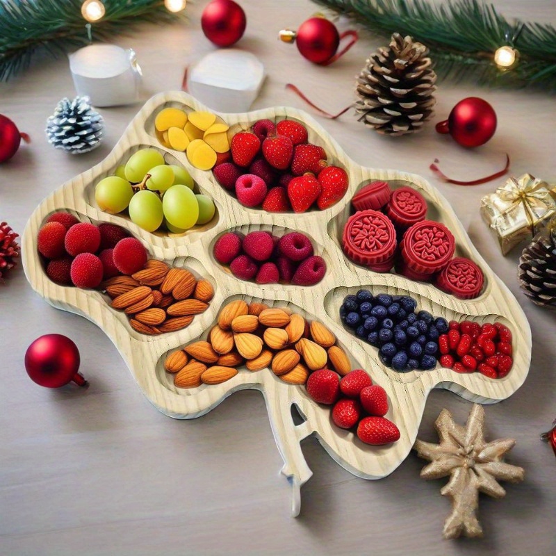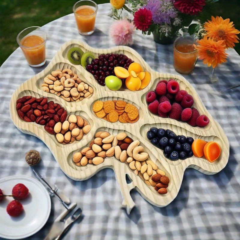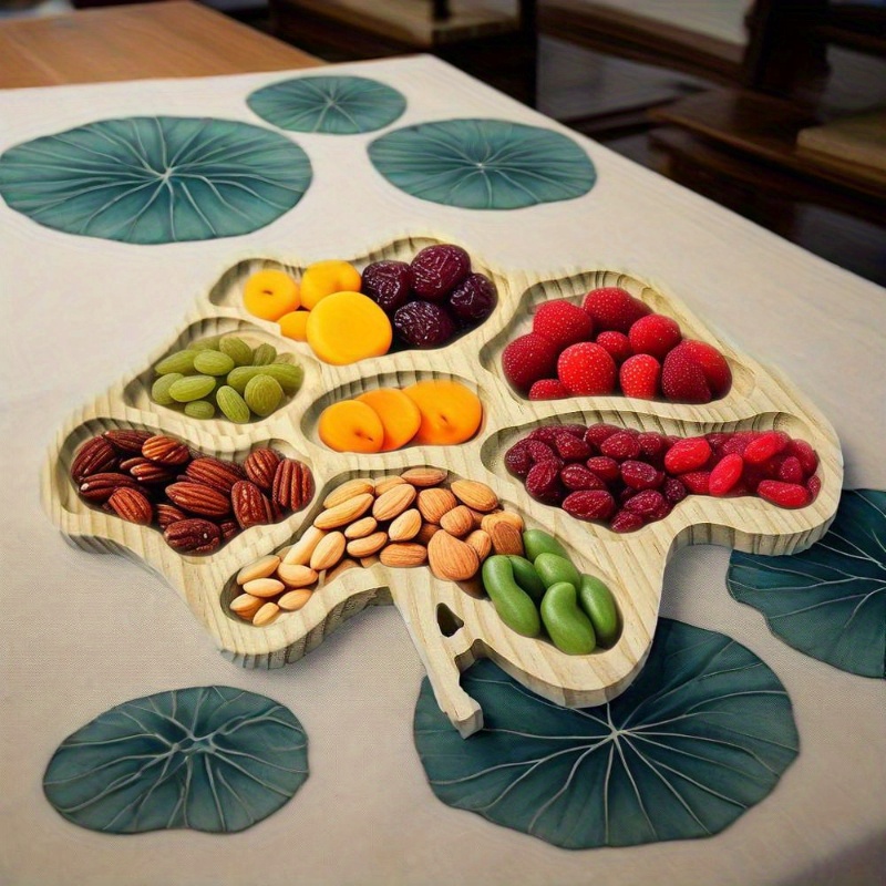 Plateau de service élégant en bois en forme de feuille de lotus - Plateau à 7 compartiments pour apéritifs et café