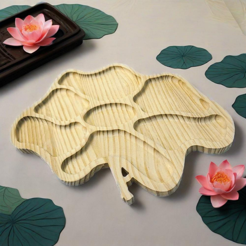 Plateau à collation élégant en bois pour feuille de lotus - Plateau de service