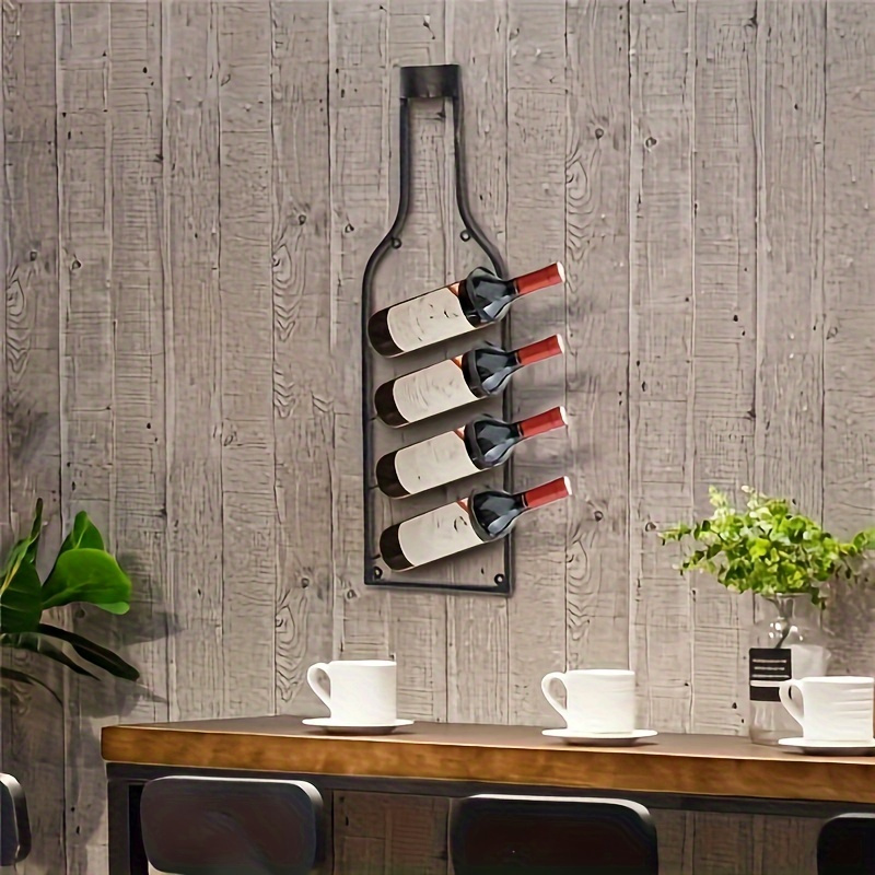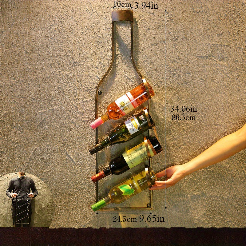Casier à vin mural vintage en bronze - Capacité de 4 bouteilles - Étagère à vin rustique en fer