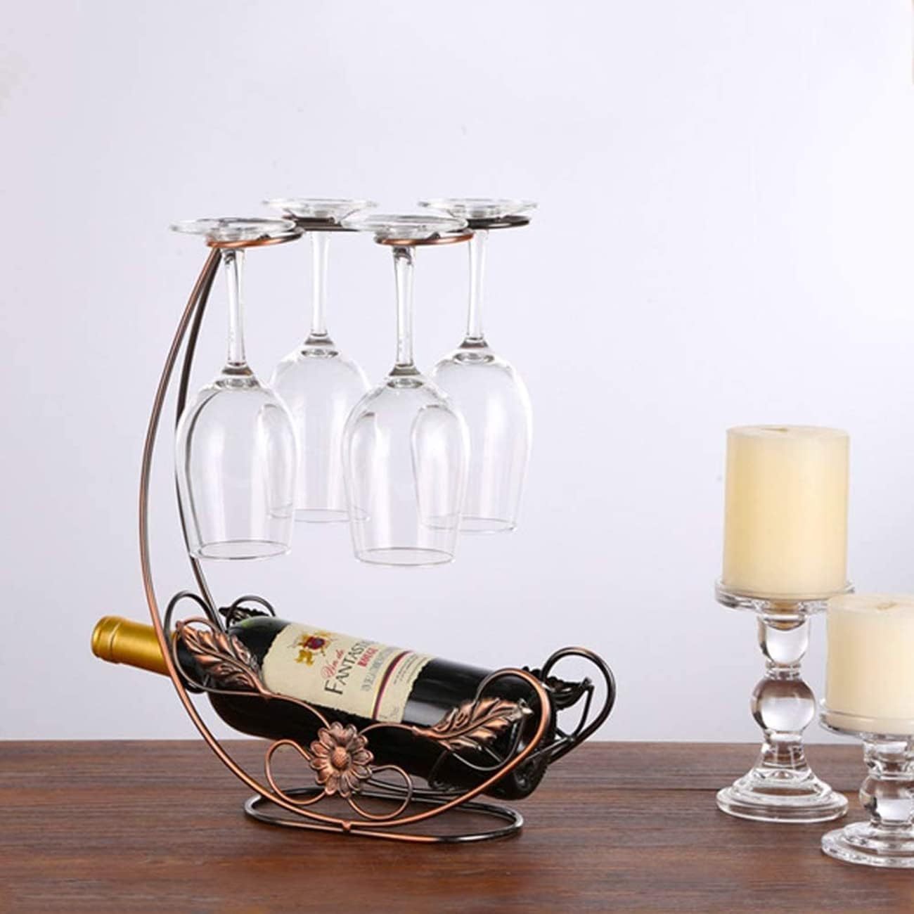 Casier à vin européen vintage - Support robuste en métal pour bouteilles et verres à vin